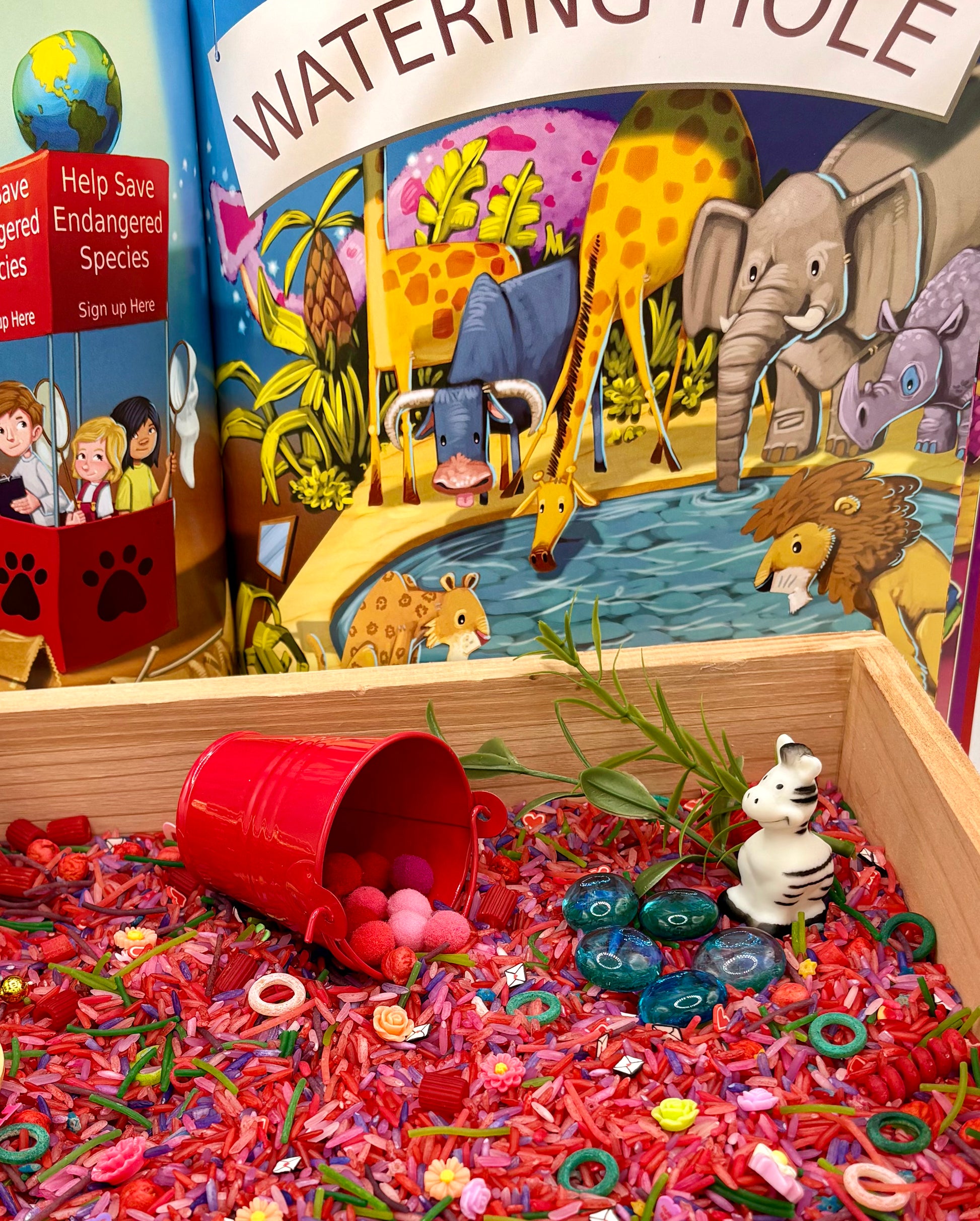 Children can scoop, sort, create, and role-play scenes from the book while practicing fine motor skills, language, math concepts, and sensory regulation.