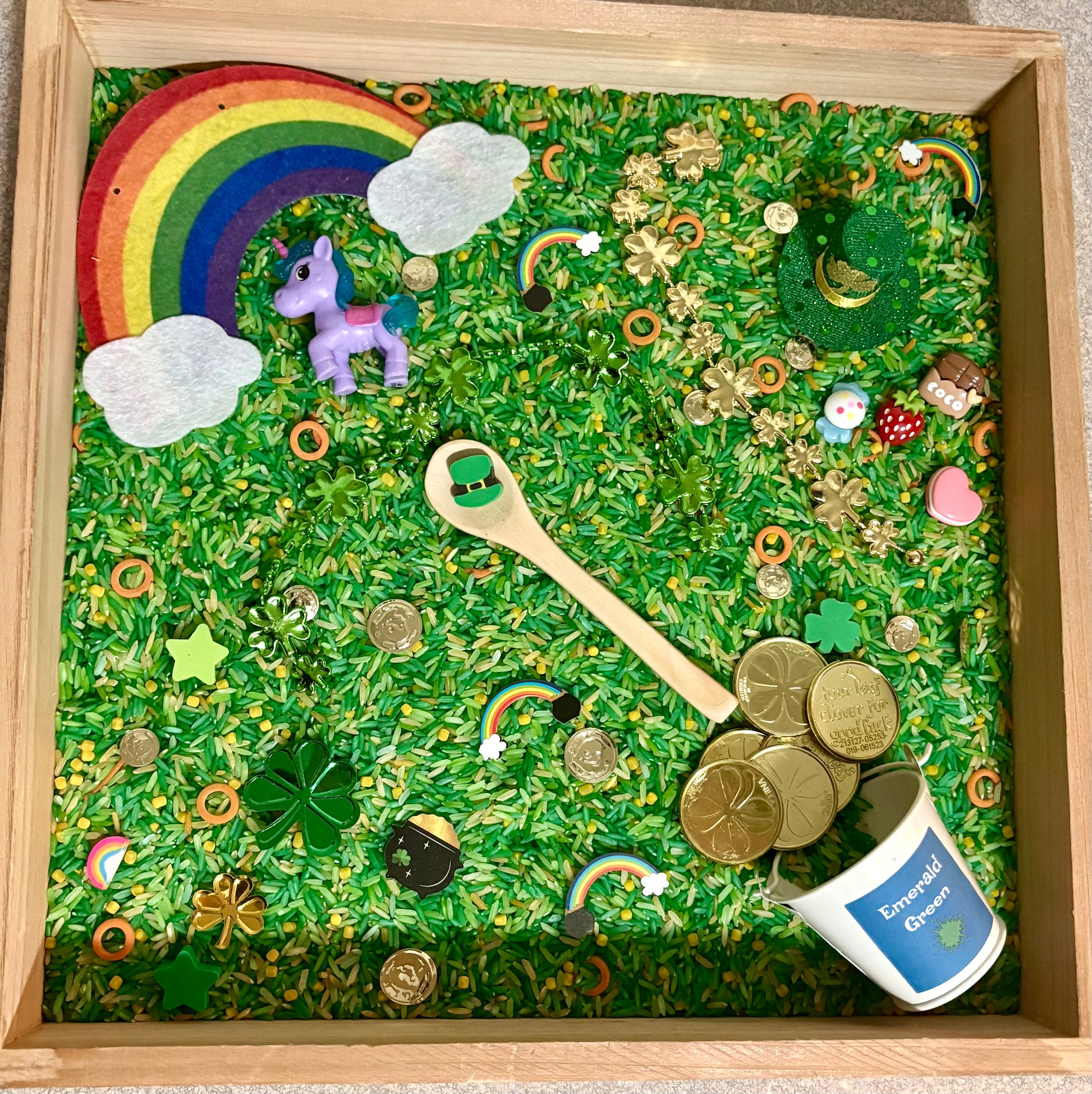Bring the magic of How to Catch a Leprechaun to life with this hands-on Storyplay sensory bin. This set includes a paperback copy of the storybook and a vibrant, paint-free emerald sensory rice mix designed for mess-friendly play. Filled with rainbows, shamrocks, gold coins, and magical treasures, it invites children to scoop, explore, and create their own leprechaun-catching adventures through imaginative, open-ended storytelling.